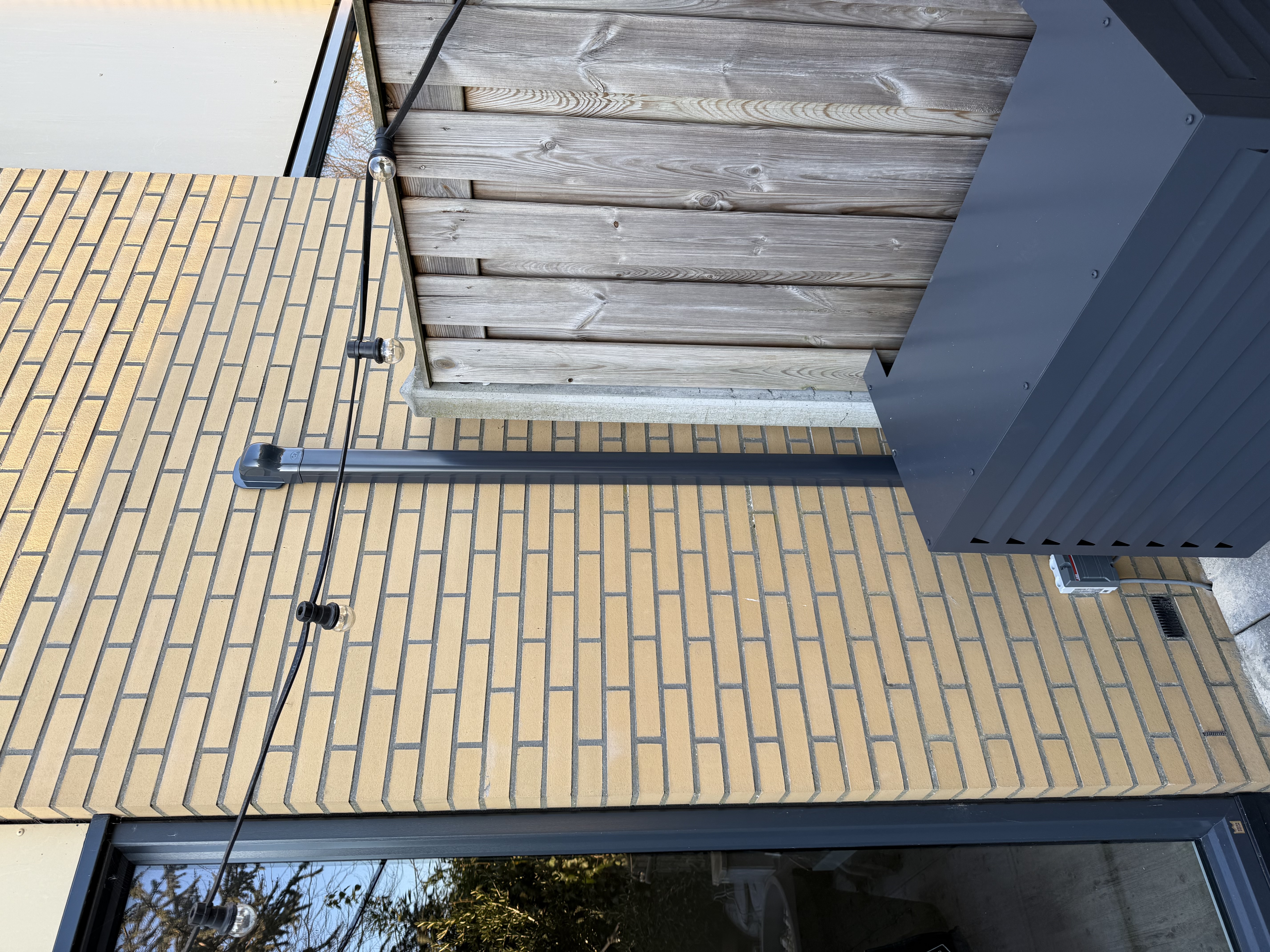 Ook de buitenunit hebben we netjes verwerkt en voorzien van een Qventi straalomkasting in de kleur antraciet, perfect passend bij de uitstraling van het huis. Daarnaast hebben we gekozen voor antracietkleurig kunststof gootwerk, wat tegenwoordig onze standaard is.